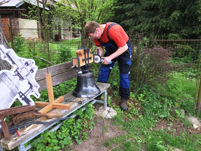 Konkrétní postup prací byl stanoven po podrobné obhlídce na místě zvonařem Michalem Votrubou. Do vidlice tvořené oběma rameny kmene lípy byla ve výšce 7 metrů, na původním místě vyznačeném dvěma starými kleštinami, zavěšena replika původního zvonu. Zvon o váze 41,5 kg visí na dubovém závěsu a ten je pak vsazen do kovových ložisek. Ta byla připevněna na stromě zhruba v místě, kde jsou dodnes patrná ložiska původní. Celou instalaci provedl z přistavené vysokozdvižné plošiny odborník — zvonař. Nad celou konstrukcí je umístěna šindelová stříška, vyrobená tesařem. Ta zajistí, aby do celé soustavy nezatékalo a nezanášela se padajícím listím.