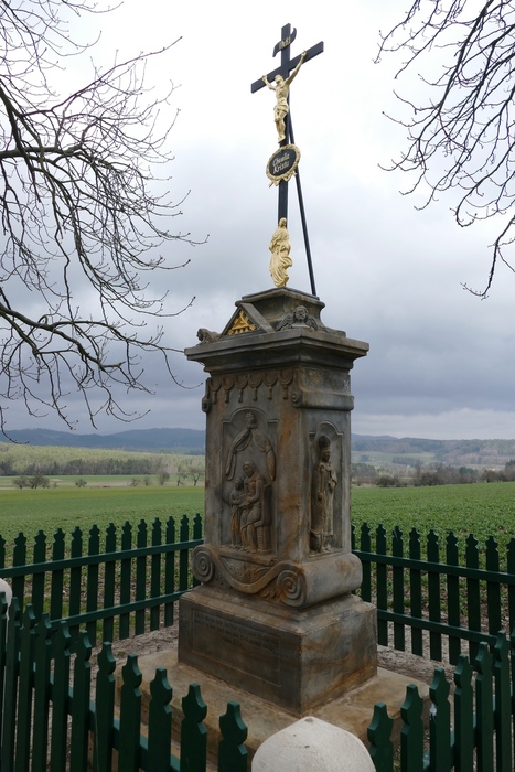 Obnoven byl i historický plot kolem kříže, který se fragmentálně dochoval v podobě dožilého sloupku.